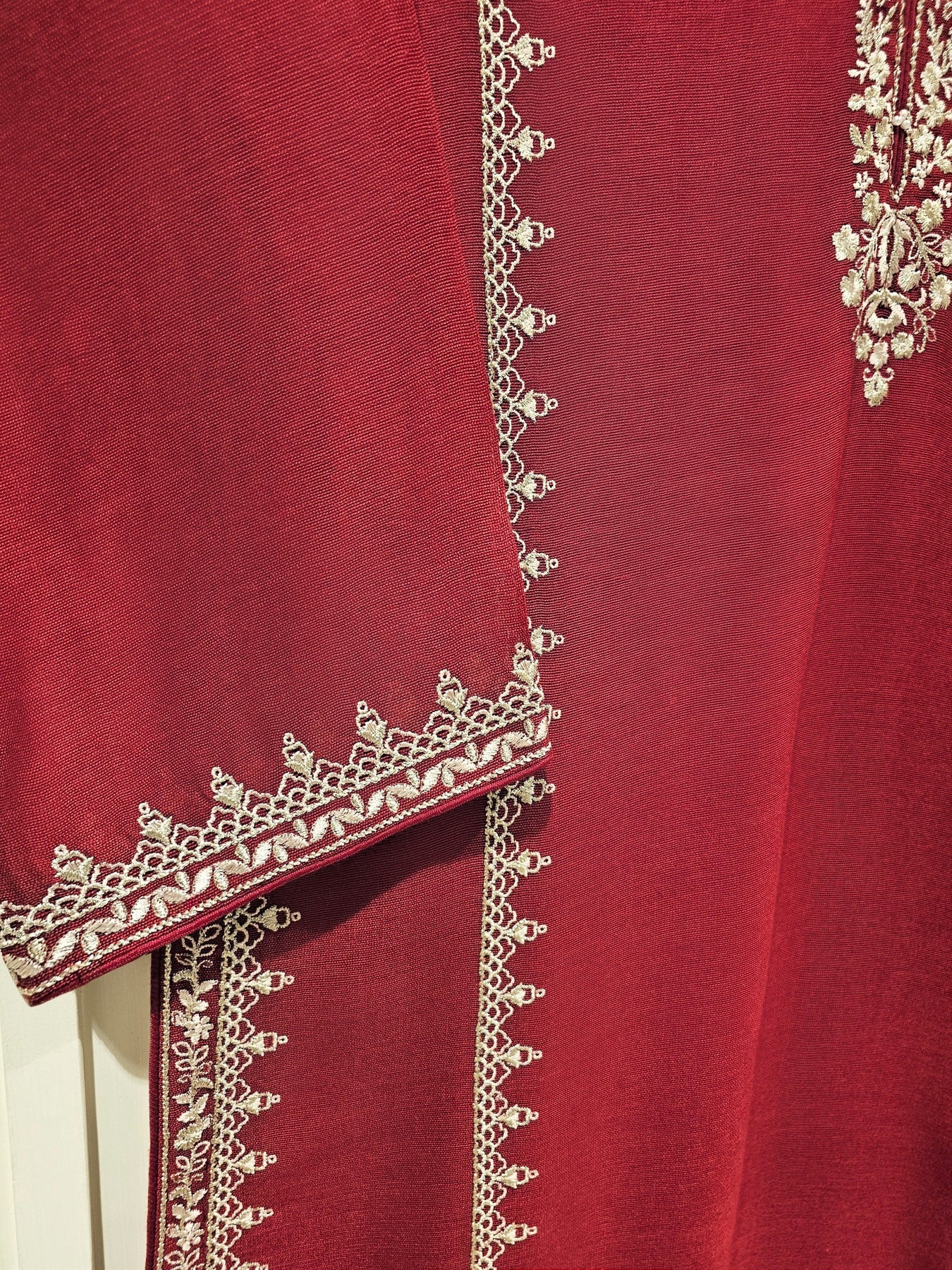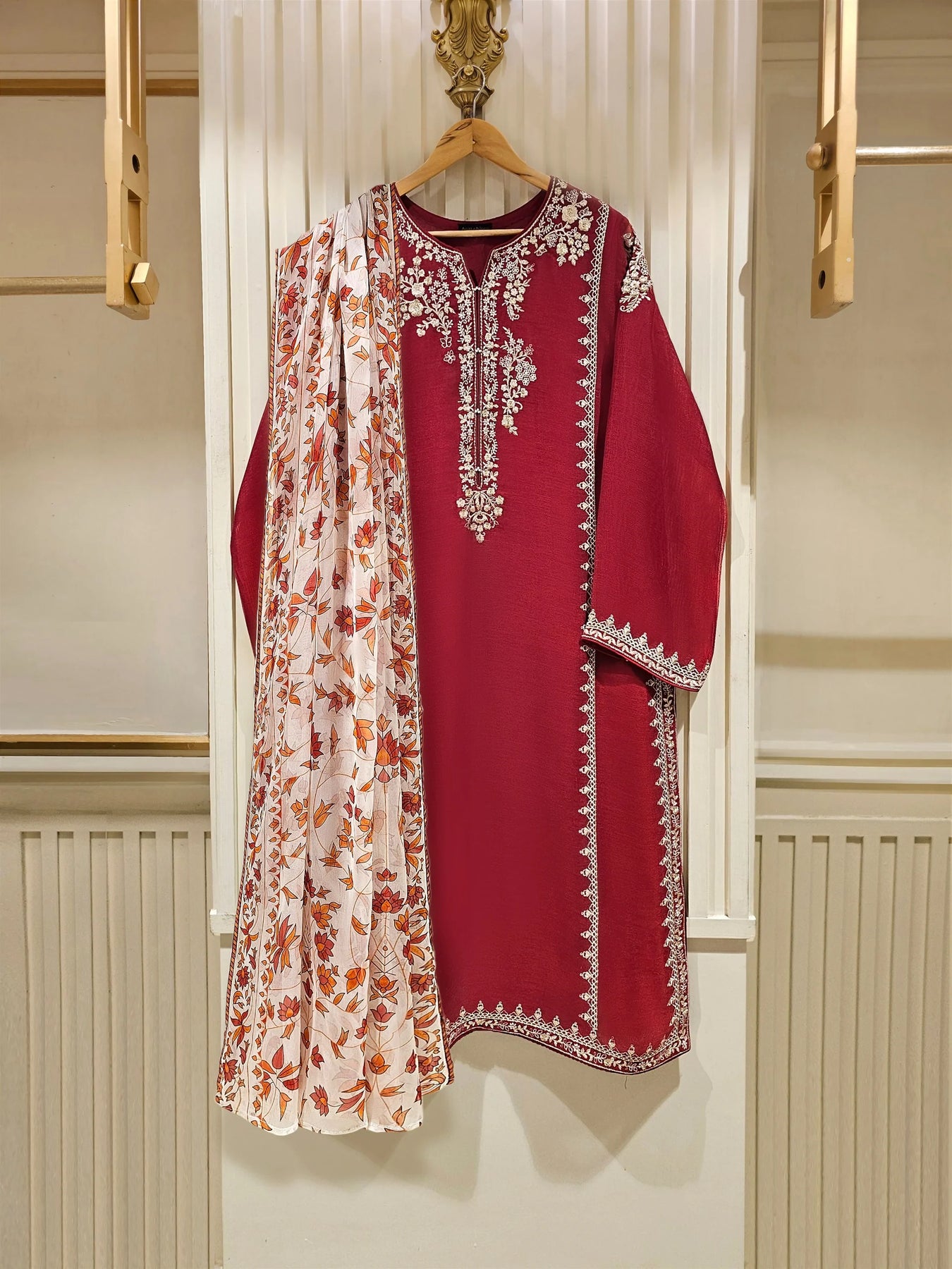 3 Piece - Pure Cotton Net Embroidered Suit S111341