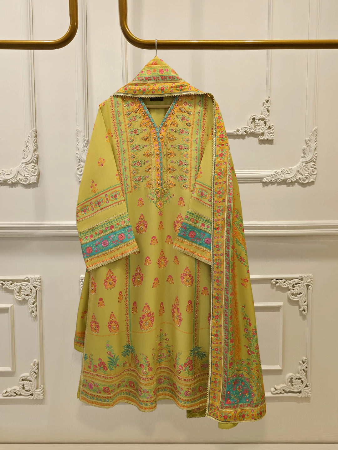 PURE CHIFFON EMBROIDERED SHIRT WITH SILK PANTS S107608